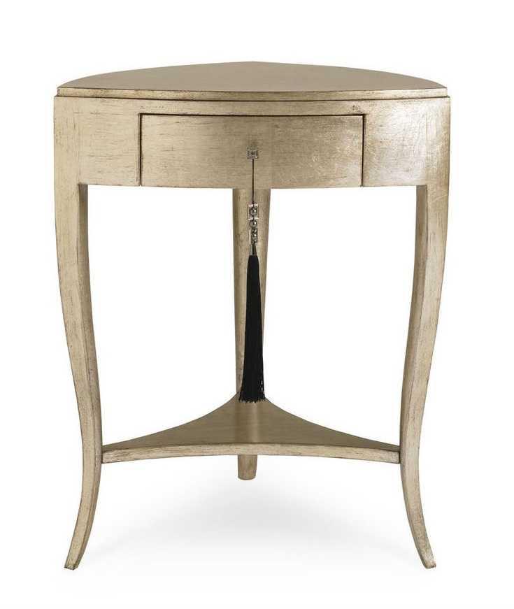 Столик-бестселлер, выполнен в роскошной золотой отделке, изящная кисть в качестве ручки ящика придает ему особый шарм.